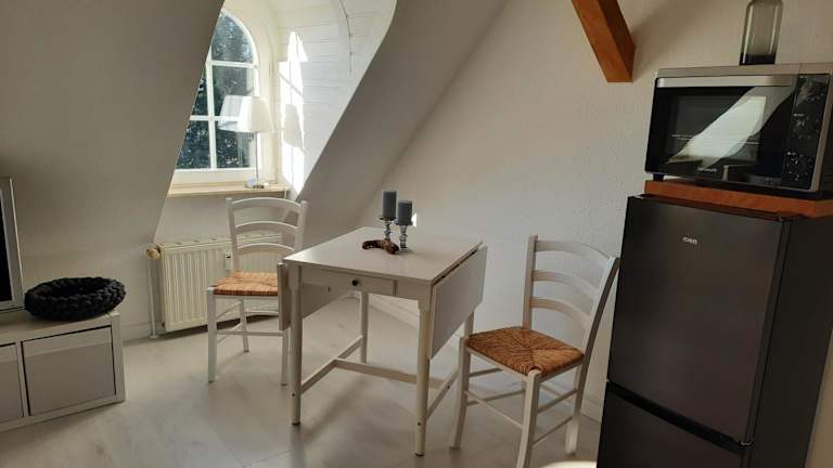 Die Ferienwohnung verfügt über ein Schlafzimmer, ein Wohnzimmer und eine voll ausgestattete Küche, die mit Kühlschrank und Kaffeemaschine ausgestattet ist. Des Weiteren sind ein Badezimmer mit Dusche und Haartrockner vorhanden. Handtücher und Bettwäsche werden bereitgestellt.