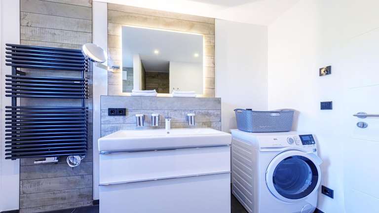 Die Ferienwohnung beinhaltet ein Schlafzimmer, ein Wohnzimmer mit einem TV und eine gut ausgestattete Küche mit Kühlschrank und Geschirrspüler. Ein Badezimmer mit Dusche ist ebenfalls vorhanden. Handtücher und Bettwäsche werden gestellt. Zusätzlich stehen Gartenmöbel zur Verfügung.