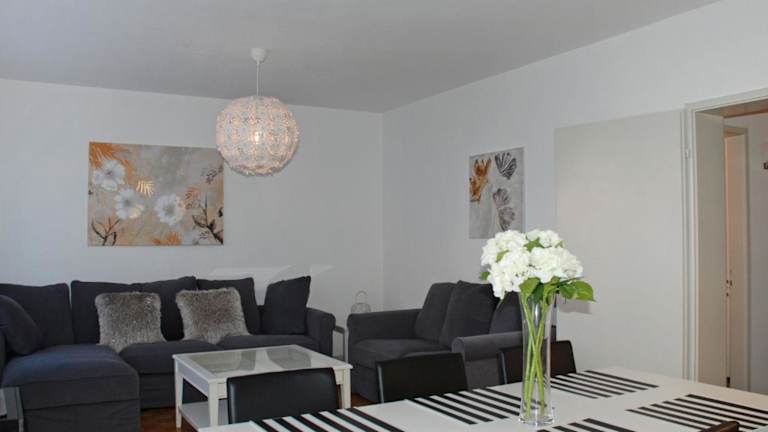 Die Ferienwohnung umfasst 2 Schlafzimmer, ein Wohnzimmer, ein Badezimmer mit Badewanne und Haartrockner sowie einen Flachbild-TV mit Kabelkanälen.