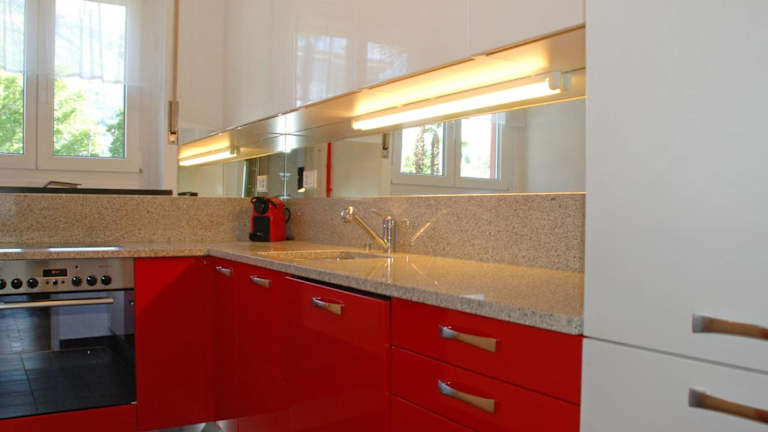 Die Unterkunft beinhaltet eine voll ausgestattete Küche mit Kühlschrank und Kaffeemaschine.