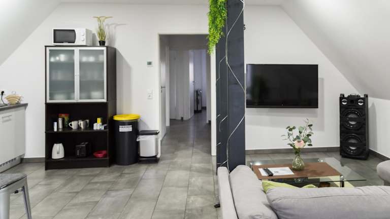 Die Ferienwohnung bietet eine gut ausgestattete Küche mit Kühlschrank, Geschirrspüler und Ofen. Sie umfasst zudem ein Wohnzimmer, einen Essbereich, 3 Schlafzimmer und 2 Badezimmer mit Dusche. Handtücher und Bettwäsche werden bereitgestellt.