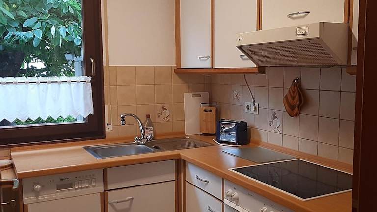 Die Ferienwohnung umfasst 1 Schlafzimmer, eine voll ausgestattete Küche mit Kühlschrank und Geschirrspüler sowie ein Badezimmer mit Dusche und Haartrockner. Handtücher und Bettwäsche werden zur Verfügung gestellt.