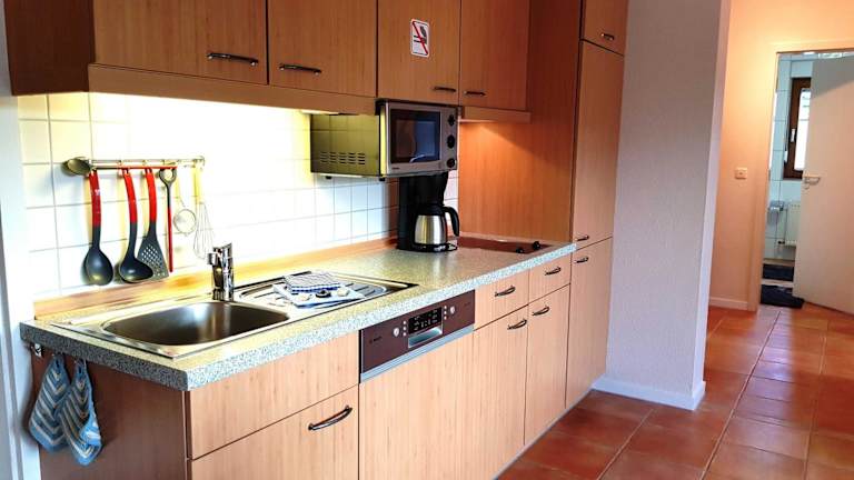Die Ferienwohnung umfasst ein Schlafzimmer, ein Wohnzimmer und eine voll ausgestattete Küchenzeile mit Kühlschrank und Kaffeemaschine. Das Badezimmer ist mit einer Dusche und einem Haartrockner ausgestattet. Zur Unterhaltung steht ein Flachbild-TV zur Verfügung.