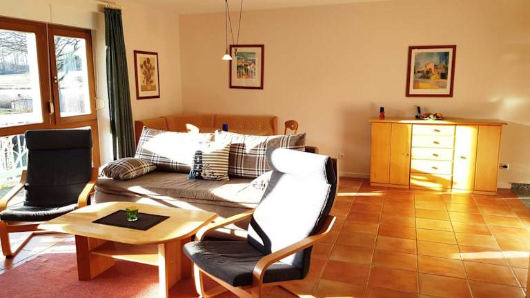 Die Ferienwohnung mit Balkon und Seeblick im 1. OG ist eine Nichtraucherunterkunft mit einem Balkon und kostenfreiem Privatparkplatz. WLAN ist ebenfalls kostenlos verfügbar. Die Unterkunft ist ideal für einen entspannten Aufenthalt am Wasser, jedoch sind Feierlichkeiten wie Junggesellenabschiede nicht gestattet.