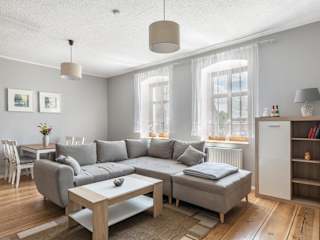 Die Ferienwohnung umfasst 1 Schlafzimmer, ein Wohnzimmer und eine voll ausgestattete Küche mit Kühlschrank und Kaffeemaschine. Das Badezimmer ist mit einer Badewanne und kostenlosen Pflegeprodukten ausgestattet. Handtücher und Bettwäsche werden bereitgestellt.