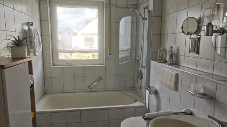 Die Ferienwohnung mit Kanalblick befindet sich in Hirschaid, 16 km entfernt von der Fußgängerzone in Bamberg, 17 km von der Konzert- und Kongresshalle Bamberg sowie dem Bamberger Dom. Sie bietet einen kostenlosen Privatparkplatz und ist 13 km von der Brose Arena Bamberg und 15 km vom Hauptbahnhof Bamberg entfernt. Der Flughafen Nürnberg ist 44 km entfernt. Die Altstadt von Nürnberg ist 50 km von der Unterkunft entfernt.