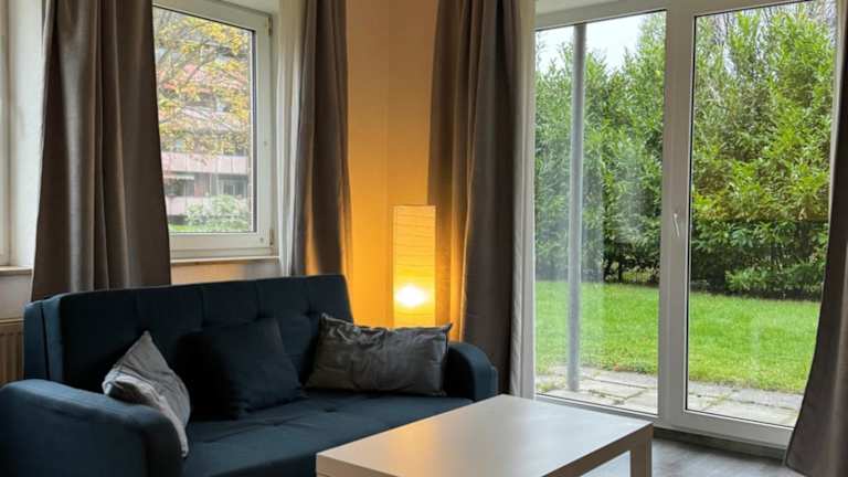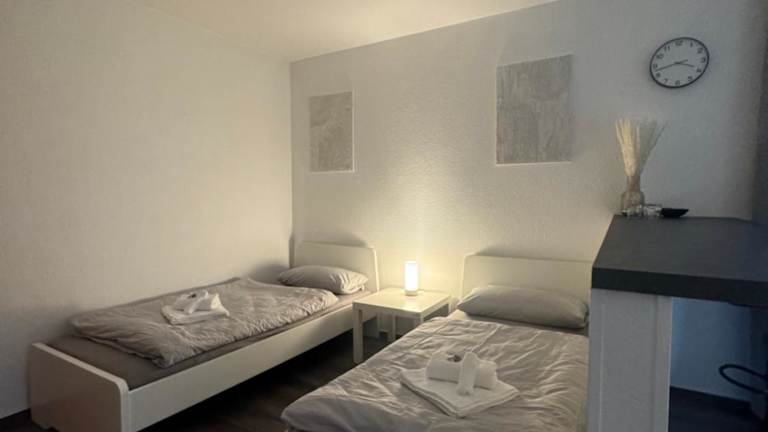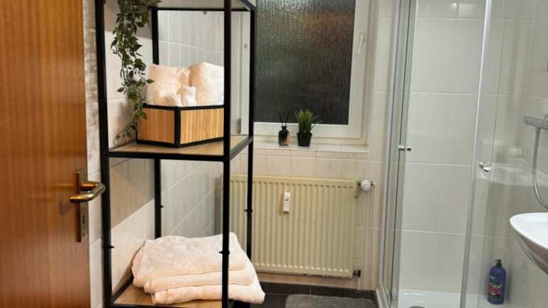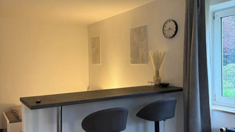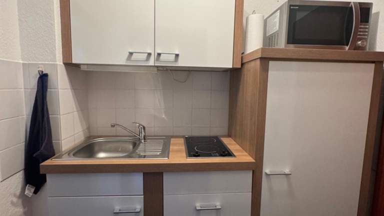 Die Ferienwohnung umfasst ein Schlafzimmer und eine Küche, die mit einem Kühlschrank und einer Mikrowelle ausgestattet ist. Ein Flachbild-TV, ein Sitzbereich sowie ein Badezimmer mit Dusche sind ebenfalls vorhanden. Handtücher und Bettwäsche werden bereitgestellt.