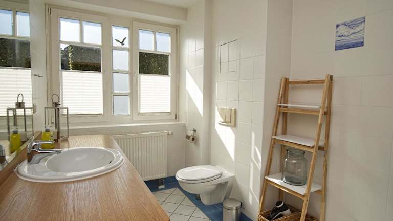 Die Ferienwohnung bietet Platz in zwei Schlafzimmern. Sie ist mit einem TV sowie einer Küche ausgestattet, die über einen Kühlschrank und einen Geschirrspüler verfügt.