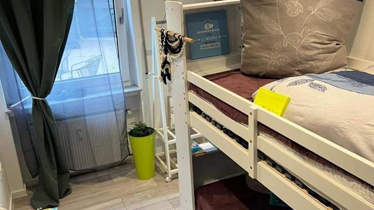 Die Ferienwohnung besteht aus zwei Schlafzimmern und einem Wohnzimmer. Eine voll ausgestattete Küche mit Kühlschrank und Kaffeemaschine ist vorhanden. Außerdem gibt es ein Badezimmer, das mit einer Dusche sowie einer Badewanne ausgestattet ist. Ein Fernseher sorgt für Unterhaltung.