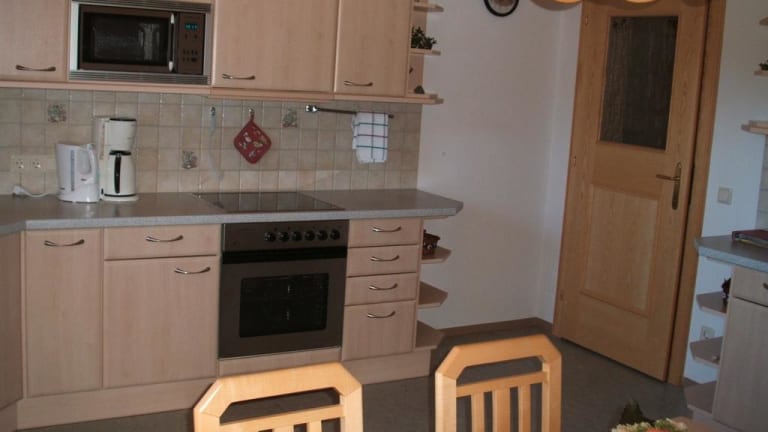 Unser Privathaus bietet Ihnen eine liebevoll und komfortabel eingerichteter Ferienwohnung, welche den gesamten 1. Stock mit ca. 85 qm - für 2 - 5 Personen umfasst: Vorraum, grosse komplett eingrichtete Küche mit E-Herd mit Backofen, Mikrowelle + Geschirrspüler; helles Schlafzimmer; 2. Schlafzimmer mit Waschbecken, gemütliches Wohnzimmer mit Sat-TV und Radio; Badezimmer mit Badewanne, Dusche und 2 Waschbecken; WC; Handtücher sowie Bett- und Küchenwäsche vorhanden. Alles Vollholzmöbel.
