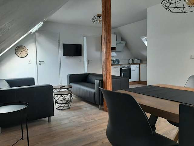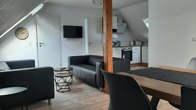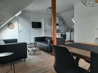 In der Unterkunft befindet sich ein Restaurant. Die Ferienwohnung ist darüber hinaus mit einer voll ausgestatteten Küche mit Kühlschrank und Geschirrspüler ausgestattet.