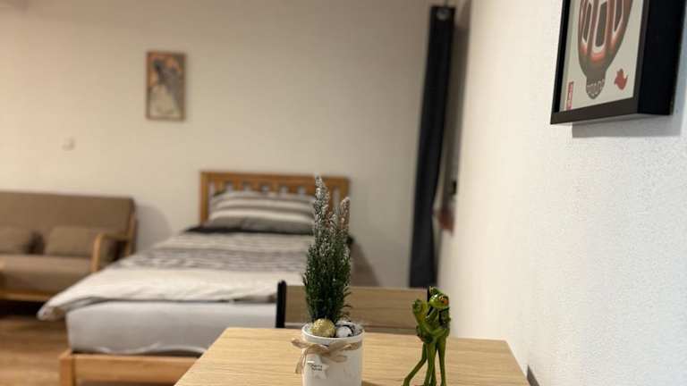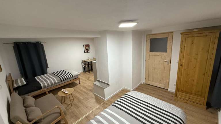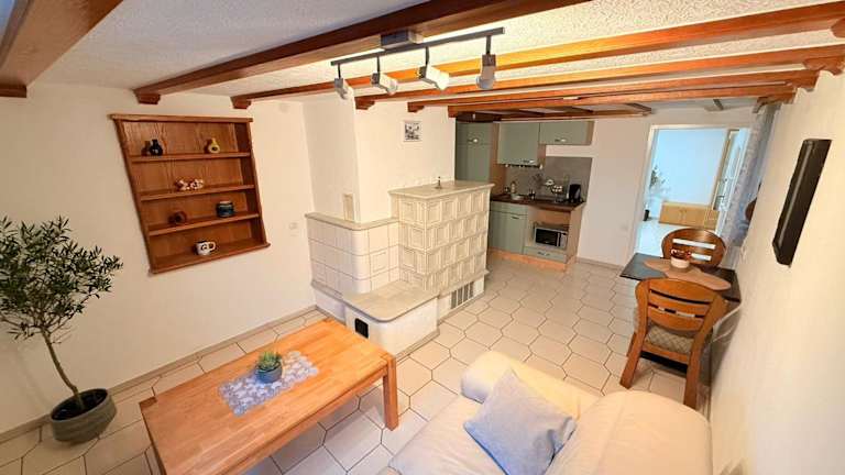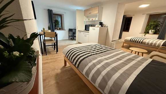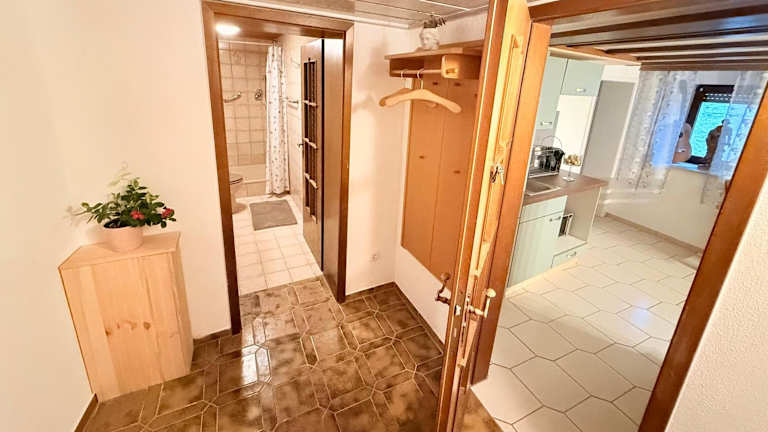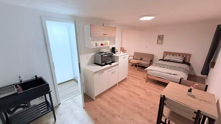 Die Ferienwohnung verfügt über 1 Schlafzimmer, eine voll ausgestattete Küche mit Kühlschrank und Mikrowelle sowie ein Badezimmer mit Dusche und Haartrockner.