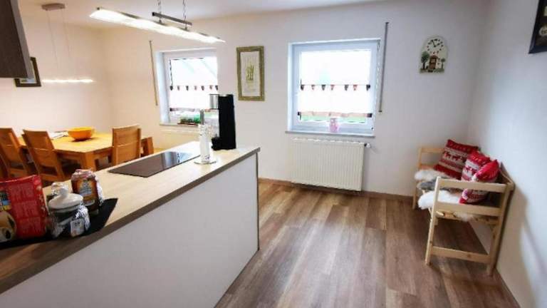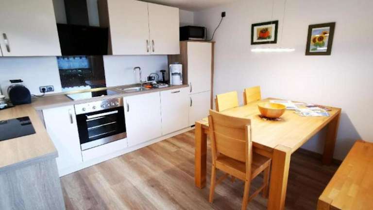 Die Ferienwohnung verfügt über zwei Schlafzimmer, eine voll ausgestattete Küche mit Kühlschrank und Geschirrspüler sowie ein Badezimmer mit Dusche und Haartrockner. Handtücher und Bettwäsche werden bereitgestellt. Die Unterkunft ist Nichtraucher und bietet Platz für Familien und Gruppen.