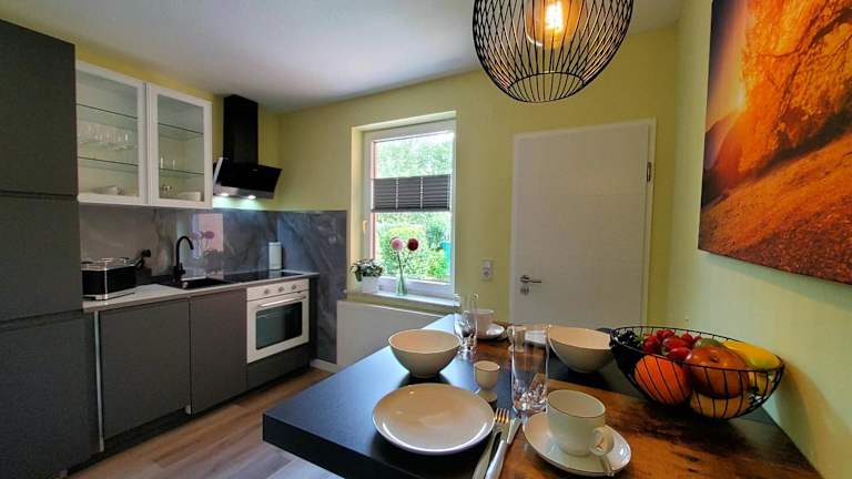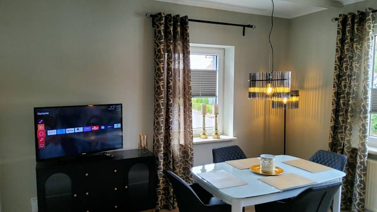 Die Ferienwohnung umfasst zwei Schlafzimmer, ein Badezimmer mit Dusche sowie eine gut ausgestattete Küche, die über einen Kühlschrank und einen Geschirrspüler verfügt. Ein Flachbild-TV mit Satellitenkanälen ist ebenfalls vorhanden, ebenso wie Handtücher und Bettwäsche. Die Unterkunft ist als Nichtraucherzone eingerichtet.