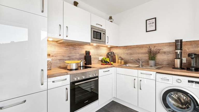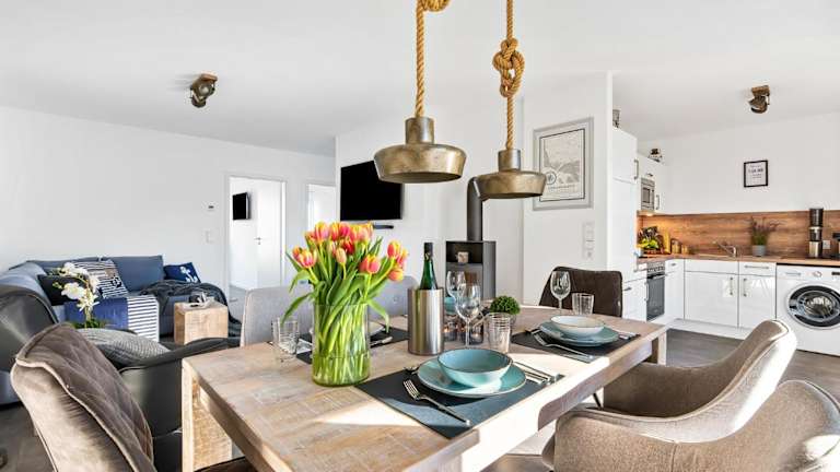 Die Ferienwohnung Ankerplatz verfügt über 2 Schlafzimmer, einen TV und eine voll ausgestattete Küche. Zur Küchenausstattung gehören ein Kühlschrank, ein Geschirrspüler, eine Waschmaschine, ein Ofen und eine Mikrowelle.