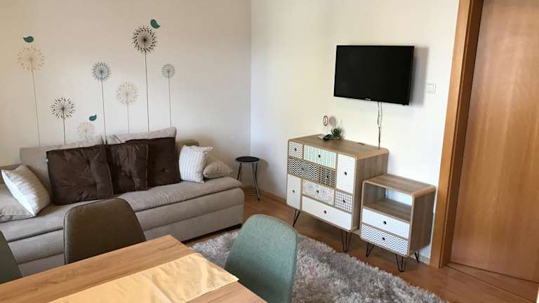 Die Ferienwohnung besteht aus 2 Schlafzimmern, einem Wohnzimmer und einer voll ausgestatteten Küche, die mit einem Kühlschrank und einer Kaffeemaschine ausgestattet ist. Zudem gibt es 1 Badezimmer mit Dusche und Haartrockner sowie einen Flachbild-TV.