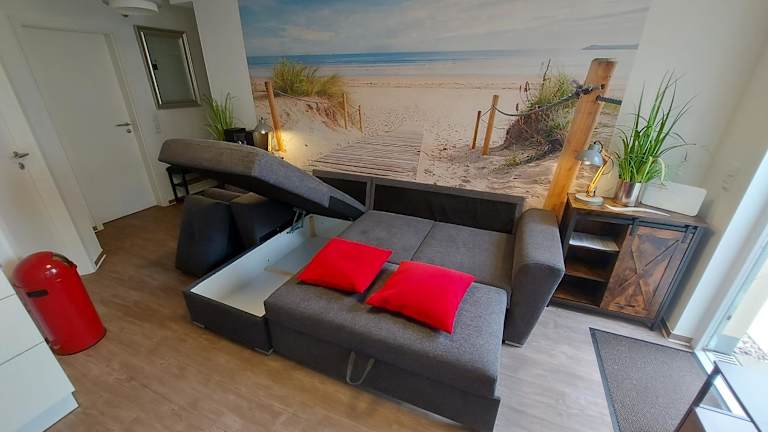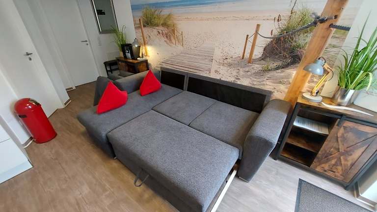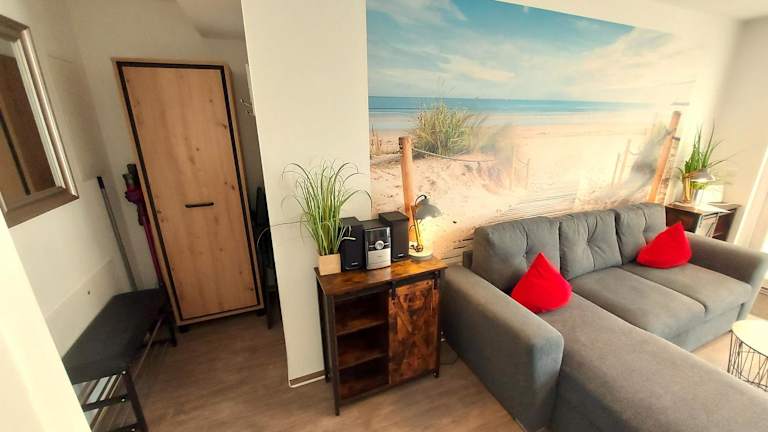 Die Ferienwohnung verfügt über ein Schlafzimmer, ein Wohnzimmer, einen Flachbild-TV und eine gut ausgestattete Küchenzeile mit Kühlschrank und Geschirrspüler. Ein Badezimmer mit Dusche ist ebenfalls vorhanden. Gegen Aufpreis können Handtücher und Bettwäsche bereitgestellt werden. Die Zimmer sind schallisoliert und es gibt die Möglichkeit, ein Babybett für Gäste bis 2 Jahre zu erhalten.