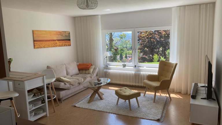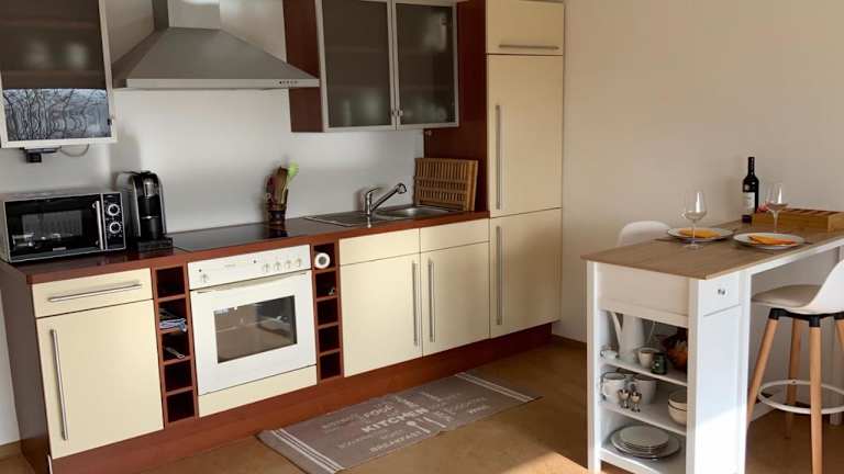 Die Ferienwohnung umfasst ein Schlafzimmer, ein Wohnzimmer, ein Badezimmer mit Badewanne sowie eine gut ausgestattete Küche mit Kühlschrank und Ofen. Zur Ausstattung gehören ein Flachbild-TV, Handtücher und Bettwäsche. Zudem bietet die Unterkunft eine Terrasse mit Bergblick.