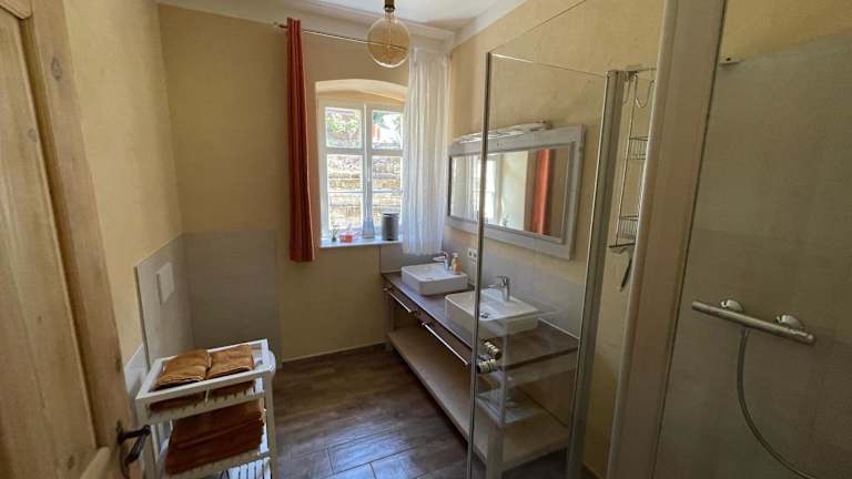 Die Ferienwohnung Parkblick im Badehaus liegt in Schweizermühle, 13 km von der Festung Königstein entfernt. Die Entfernung zu Schloss & Park Pillnitz beträgt 27 km, während der Panometer Dresden 37 km entfernt ist. Der nächstgelegene Flughafen ist der Flughafen Dresden in 54 km Entfernung.