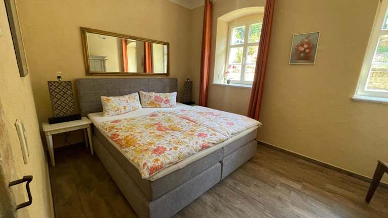 Die Unterkunft Ferienwohnung Parkblick im Badehaus bietet kostenloses WLAN und einen malerischen Flussblick. Diese private Ferienwohnung wird von einem Gastgeber verwaltet und erlaubt keine Junggesellen-/Junggesellinnenabschiede. Die Unterkunft ist durch Sicherheits- und Hygienemaßnahmen gut geschützt, einschließlich einer regelmäßigen Desinfektion der Räumlichkeiten und kontaktlosem Check-in/Check-out.