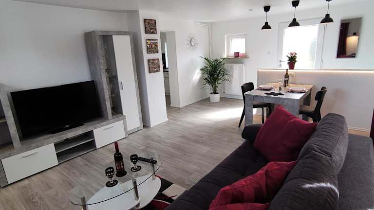 Die Ferienwohnung Peters bietet ein gemütliches Apartment mit 1 Schlafzimmer und einem Wohnzimmer. Das Apartment verfügt über eine Terrasse mit Blick auf den Garten, wo Sie sich entspannen können. Zur Ausstattung gehört auch ein Flachbild-TV und eine voll ausgestattete Küche mit einem Kühlschrank und einem Geschirrspüler. Handtücher und Bettwäsche werden gestellt, um Ihren Aufenthalt so angenehm wie möglich zu gestalten.