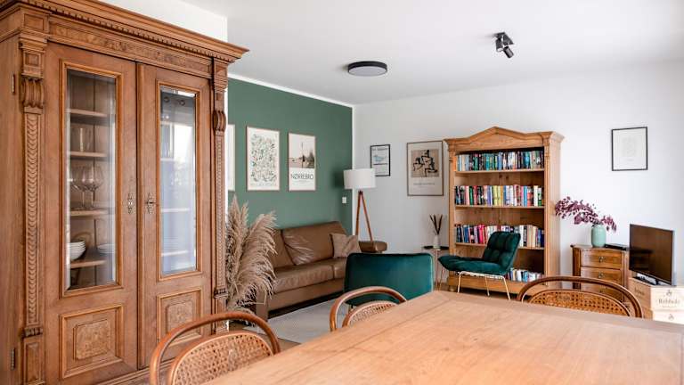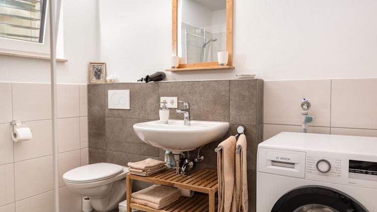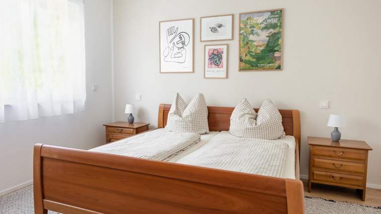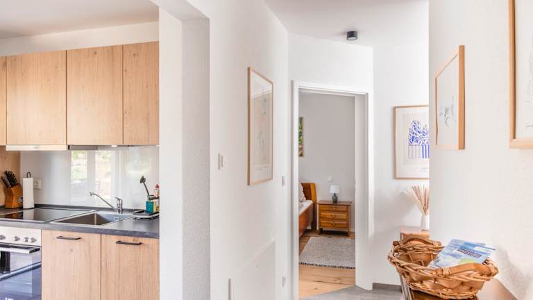 Die Ferienwohnung verfügt über 1 Schlafzimmer, ein Badezimmer mit Dusche, eine Küche ausgestattet mit Kühlschrank und Geschirrspüler, einen Sitzbereich sowie einen Flachbild-TV. Handtücher und Bettwäsche sind ebenfalls vorhanden. Die Zimmer sind schallisoliert.