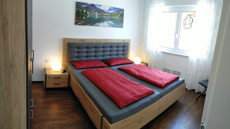 Die Ferienwohnung umfasst ein Schlafzimmer, ein Wohnzimmer mit einem Flachbild-TV, eine gut ausgestattete Küche mit Kühlschrank und Geschirrspüler sowie ein Badezimmer mit Dusche. Handtücher und Bettwäsche werden zur Verfügung gestellt.