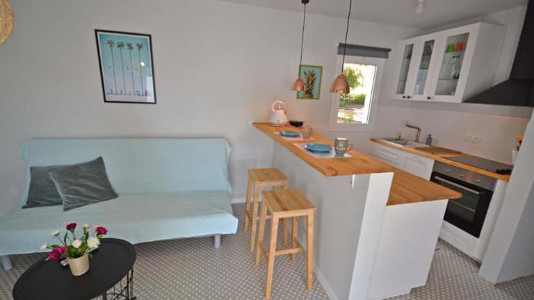 Die Ferienwohnung verfügt über ein Schlafzimmer, ein Wohnzimmer sowie eine gut ausgestattete Küche. Handtücher und Bettwäsche werden bereitgestellt.