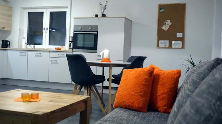 Die Wohneinheiten der Ferienwohnung sind mit Fliesenböden ausgestattet und verfügen über eine voll ausgestattete Küche, einen Kühlschrank, einen Essbereich sowie einen Flachbild-TV mit Satellitenkanälen. Jedes Zimmer bietet ein eigenes Bad mit Dusche und Haartrockner. Zu den weiteren Annehmlichkeiten gehören ein Geschirrspüler, ein Ofen, eine Mikrowelle, eine Kaffeemaschine und ein Wasserkocher. Eine Terrasse sowie Gartenmöbel sind ebenfalls vorhanden.