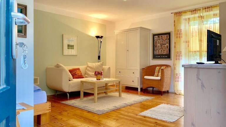 Das Apartment Ferienwohnung Riesinger liegt in Frasdorf und bietet eine ideale Ausgangslage für verschiedene Aktivitäten in der Natur. Die Umgebung lädt zum Skifahren und Radfahren ein und bietet eine malerische Landschaft mit Blick auf die Berge. In der Nähe befindet sich der Herrenchiemsee, der mit seinem beeindruckenden Schloss und den weitläufigen Gärten einen Besuch wert ist. Die Max Aicher Arena, eine bekannte Eissporthalle, ist ebenfalls in der Nähe. Der Flughafen Salzburg ist etwa 64 km entfernt und bietet eine gute Anbindung an die Ferienwohnung.