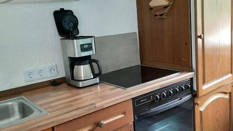 Die Ferienwohnung verfügt über eine voll ausgestattete Küche, die es Gästen ermöglicht, eigene Mahlzeiten zuzubereiten. Keine Informationen über zusätzliche Verpflegungsmöglichkeiten sind vorhanden.