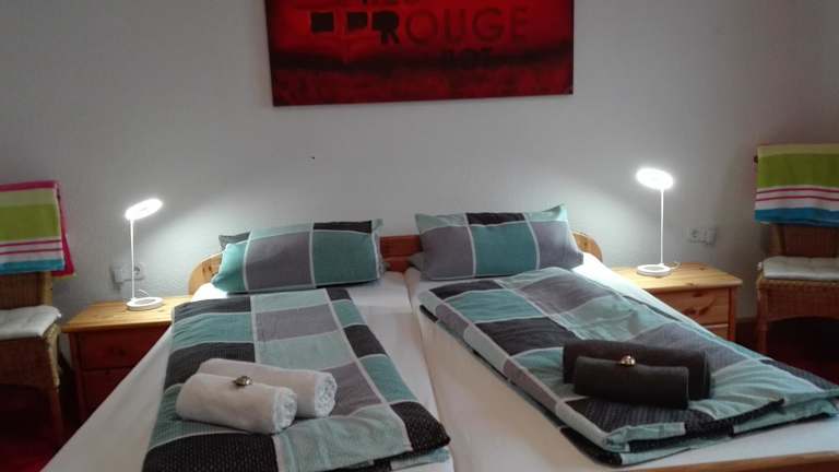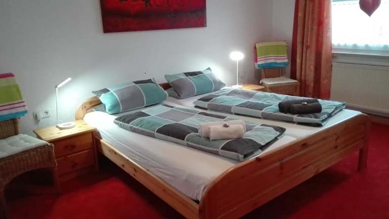 Das Apartment im Hotel Ferienwohnung Roth (Zentrum) erstreckt sich über zwei Etagen und bietet drei gemütliche Schlafzimmer, ein helles Wohnzimmer mit bequemem Sofa und Sat-TV sowie eine voll ausgestattete Küche mit Backofen, Toaster, Kaffeemaschine, Wasserkocher und Kühl-/Gefrierschrank. Handtücher und Bettwäsche werden bereitgestellt und das Apartment verfügt über ein eigenes Badezimmer mit Badewanne, Waschmaschine und kostenfreien Pflegeprodukten.