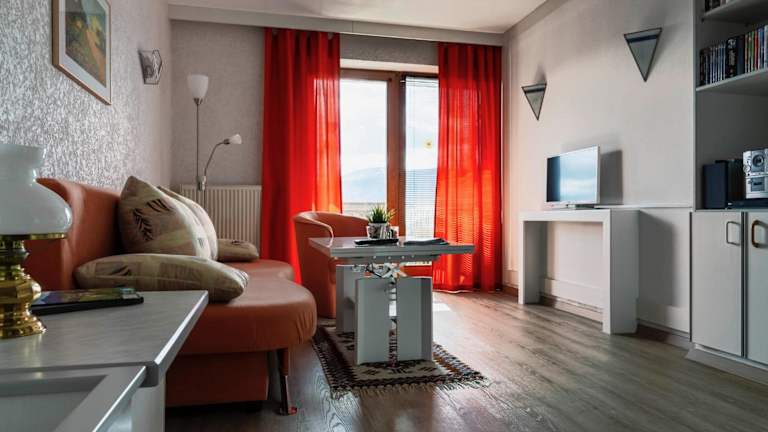 Die Ferienwohnung Sabolowitsch liegt etwa 24 km von der Drachenhöhle entfernt und bietet eine malerische Aussicht auf die Berge. Die Umgebung lädt zu Aktivitäten wie Wandern, Skifahren und Fahrradfahren ein.