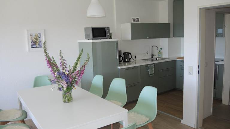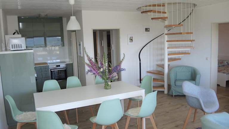 Die Ferienwohnung umfasst drei Schlafzimmer sowie ein Wohnzimmer und eine voll ausgestattete Küche, die mit einem Kühlschrank und einer Kaffeemaschine versehen ist. Sie verfügt über zwei Badezimmer mit Dusche und Haartrockner. Handtücher und Bettwäsche können gegen Aufpreis bereitgestellt werden.
