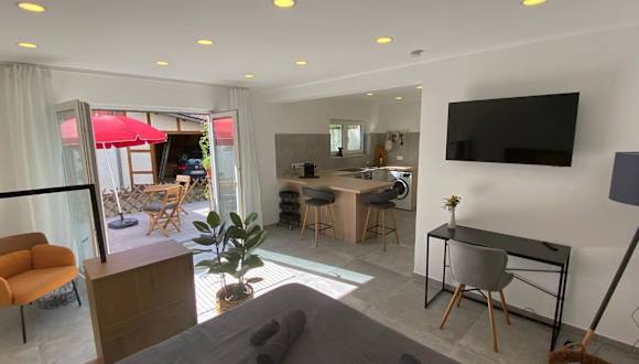 Die Unterkunft verfügt über ein Schlafzimmer und ist mit einem Flachbild-TV sowie einer voll ausgestatteten Küche ausgestattet. Die Küche beinhaltet einen Kühlschrank, einen Geschirrspüler, eine Waschmaschine, einen Ofen und eine Herdplatte. Handtücher und Bettwäsche werden zur Verfügung gestellt.