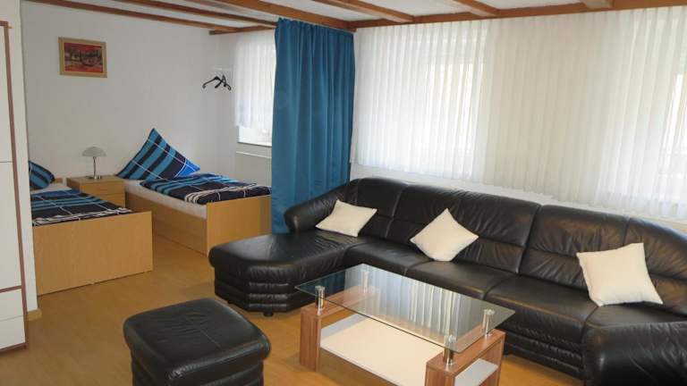 Die Ferienwohnung umfasst 1 Schlafzimmer, ein Wohnzimmer, eine voll ausgestattete Küche mit Kühlschrank und Kaffeemaschine sowie 1 Badezimmer mit Dusche und Haartrockner. Handtücher und Bettwäsche werden bereitgestellt.