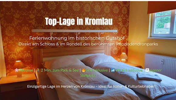 Die Ferienwohnung befindet sich in Kromlau, nur 38 km von Hauptbahnhof Cottbus entfernt. Sie liegt direkt am Strand und bietet Zugang zu einem Rhododendronpark. Die Umgebung eignet sich gut für Wandern und Radfahren.