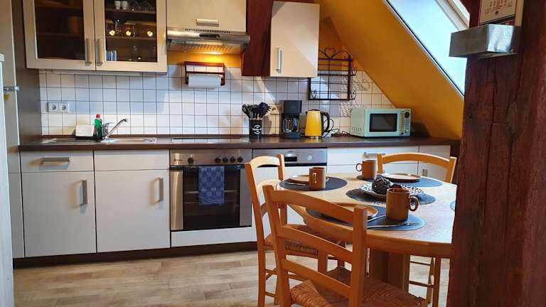 Die Ferienwohnung umfasst zwei Schlafzimmer, ein Wohnzimmer mit einem Flachbild-TV, eine gut ausgestattete Küche mit Kühlschrank und Geschirrspüler sowie ein Badezimmer mit Badewanne. Handtücher und Bettwäsche sind ebenfalls enthalten.