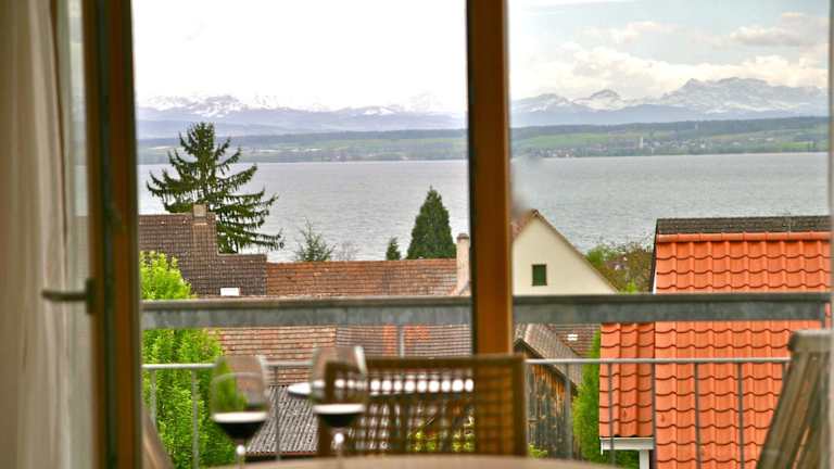 Die Ferienwohnung Schmid liegt nur 10 Gehminuten vom Bodensee und dem Hafen von Hagnau entfernt. Die Lage ist ideal, um die malerische Landschaft zu erkunden und die Weinberge der Region zu besichtigen. Der Flughafen Friedrichshafen ist nur 15 km entfernt, was die Anreise sehr bequem macht.