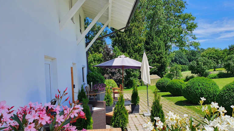 Die Ferienwohnung Schmuckkastl in Tittmoning bietet Ihnen einen komfortablen Aufenthalt in Bayern. Das klimatisierte Apartment verfügt über eine gut ausgestattete Küchenzeile, kostenfreies WLAN und einen Flachbild-Sat-TV. Entspannen Sie im Garten oder auf der Terrasse und nutzen Sie den Grill für gemütliche Abende im Freien. Die Lage der Ferienwohnung ermöglicht es Ihnen, die umliegenden Sehenswürdigkeiten wie das Schloss Burghausen, den Herrenchiemsee und den Königssee zu erkunden. Auch die Städte Salzburg und Berchtesgaden sind nicht weit entfernt.