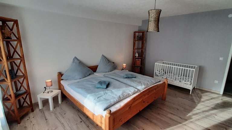 Die Ferienwohnung verfügt über zwei Schlafzimmer, ein Wohnzimmer und eine voll ausgestattete Küche. Die Küche ist mit einem Kühlschrank und einer Kaffeemaschine ausgestattet. Ein Badezimmer mit einer Dusche und einem Haartrockner stehen ebenfalls zur Verfügung. Handtücher und Bettwäsche werden bereitgestellt.