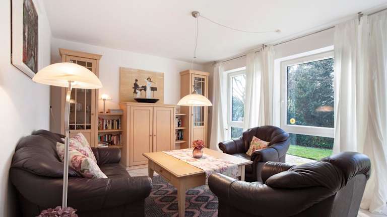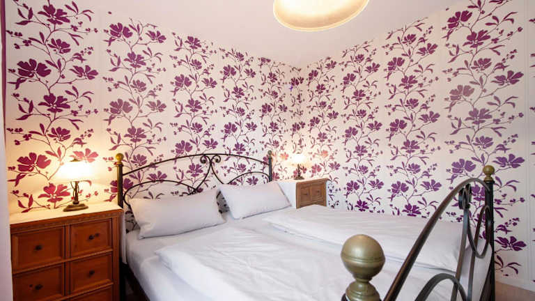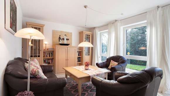 Die Ferienwohnung umfasst zwei komfortable Schlafzimmer und ein Badezimmer. Zur Ausstattung gehören Bettwäsche, Handtücher, ein TV mit Kabelkanälen sowie eine voll ausgestattete Küche. Zusätzlich gibt es eine Terrasse mit Gartenblick.