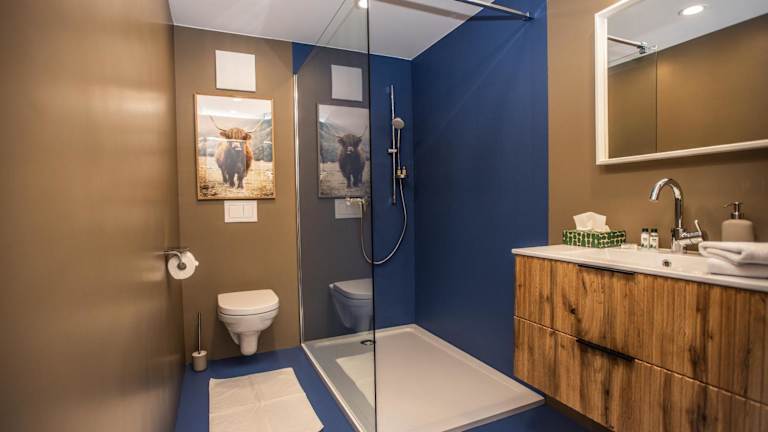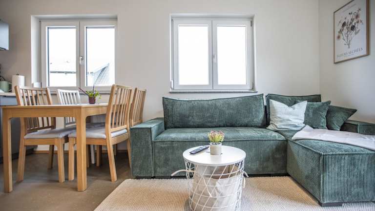Die Ferienwohnung verfügt über ein Schlafzimmer, ein Wohnzimmer sowie eine gut ausgestattete Küche mit Kühlschrank und Geschirrspüler. Zur Ausstattung gehört zudem ein Flachbild-TV und ein Badezimmer mit Dusche. Handtücher und Bettwäsche werden bereitgestellt. Die Unterkunft bietet auch allergikerfreundliche Zimmer und Gartenmöbel im Außenbereich.