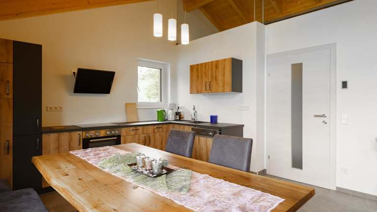 Die Ferienwohnung verfügt über 3 Schlafzimmer, ein Wohnzimmer mit einem Satelliten Flachbild-TV, eine gut ausgestattete Küche sowie 1 Badezimmer mit Dusche und Badewanne. Handtücher und Bettwäsche werden bereitgestellt. Von der Terrasse aus haben die Gäste einen Blick auf die Berge.
