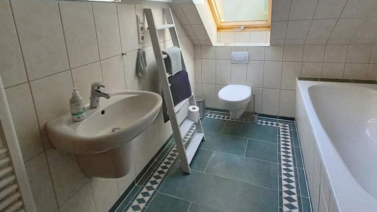 Die Ferienwohnung besteht aus einem Schlafzimmer, einem Wohnzimmer und einer voll ausgestatteten Küche mit Kühlschrank. Das Badezimmer ist mit einer Badewanne und einem Haartrockner ausgestattet. Handtücher und Bettwäsche werden bereitgestellt.