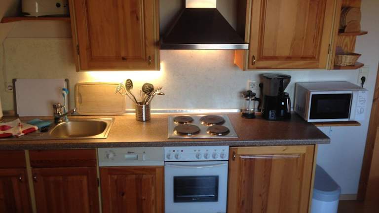 Die Ferienwohnung verfügt über 2 Schlafzimmer sowie einen TV. Die voll ausgestattete Küchenzeile enthält einen Kühlschrank, einen Geschirrspüler, eine Waschmaschine, einen Ofen und eine Herdplatte. Handtücher und Bettwäsche werden bereitgestellt.
