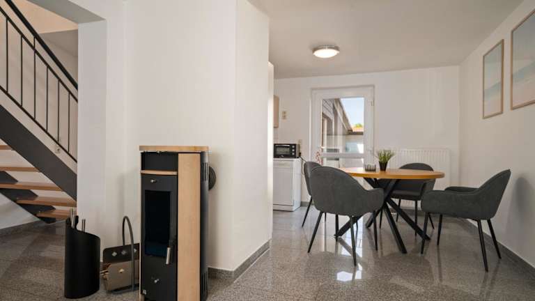 Die Ferienwohnung Seehus ist ein modernes Ferienhaus, das mit einer Sauna, einem direkten Zugang zum See und einem Bootsanlegeplatz ausgestattet ist. Die Unterkunft bietet zudem Gartenmöbel und einen Garten für entspannte Momente im Freien. Der Check-in ist zwischen 16:00 und 23:59 Uhr möglich, der Check-out bis 10:00 Uhr. Eine Zahlung per Überweisung wird vor der Anreise verlangt. Die Unterkunft ist für Feierlichkeiten wie Junggesellenabschiede nicht geeignet, und Haustiere sind nicht gestattet.