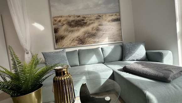 Die Ferienwohnung ist mit einer voll ausgestatteten Küche versehen, die einen Kühlschrank, einen Geschirrspüler, eine Waschmaschine, einen Ofen sowie eine Mikrowelle umfasst. Handtücher und Bettwäsche werden bereitgestellt.