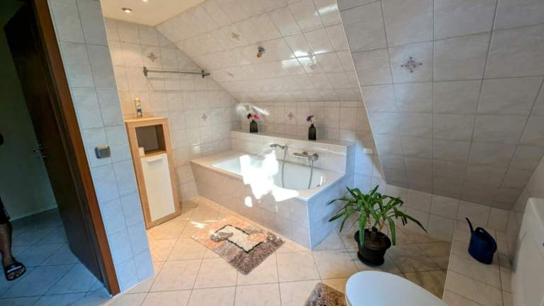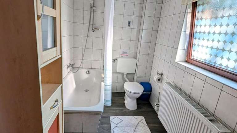 Die Ferienwohnung ist mit einem Sitzbereich und einem Flachbild-TV ausgestattet. Ein eigenes Badezimmer mit einer Badewanne ist ebenfalls vorhanden.