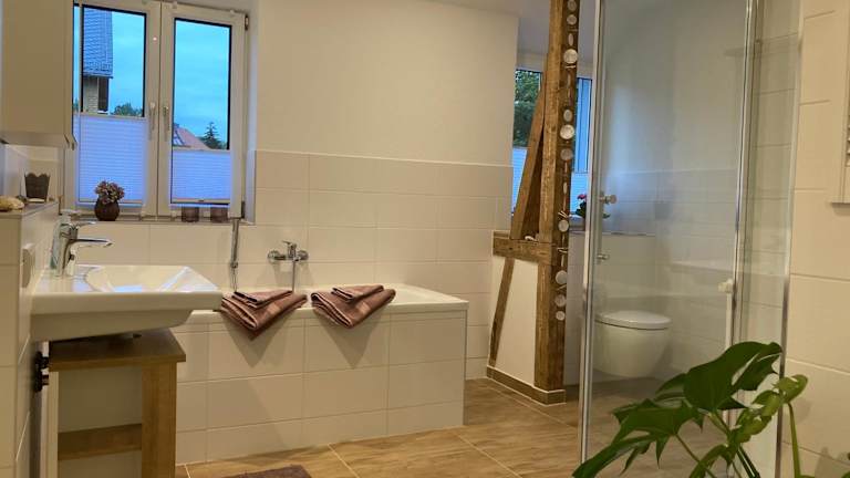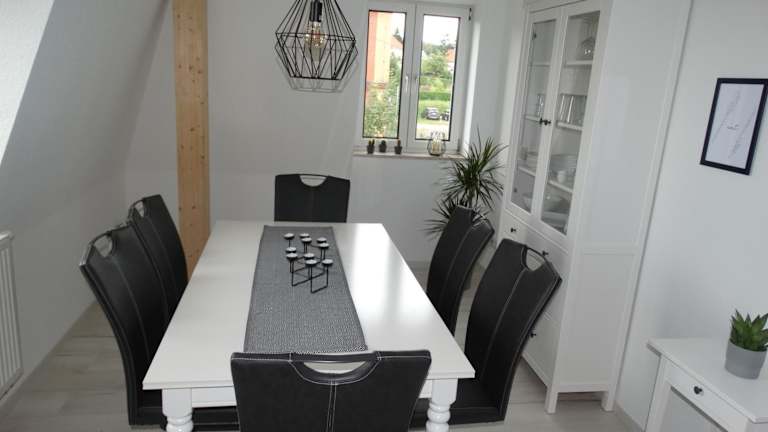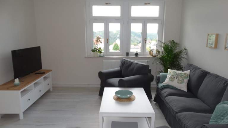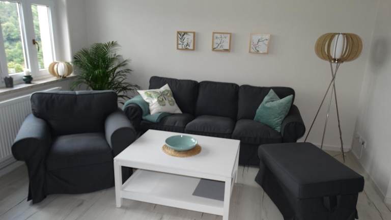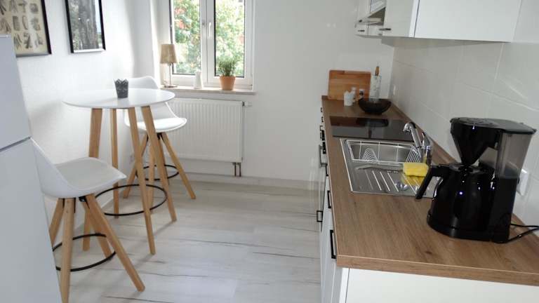 Die Ferienwohnung besteht aus zwei Schlafzimmern, einem Wohnzimmer und einer voll ausgestatteten Küche mit Kühlschrank und Kaffeemaschine. Ein Badezimmer ist mit Dusche und Badewanne ausgestattet. Bettwäsche und Handtücher werden zur Verfügung gestellt. In der Unterkunft sind Nichtraucherzimmer vorhanden und es wird darauf geachtet, dass alle Bereiche rauchfrei sind.
